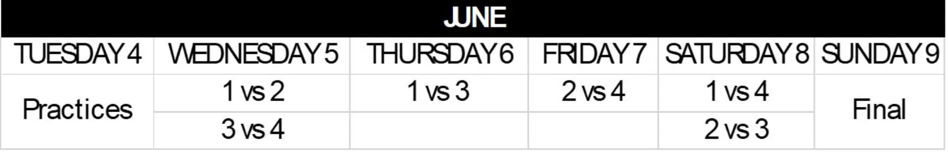 Dates: from Tuesday 4th to Sunday 9th of June 2024